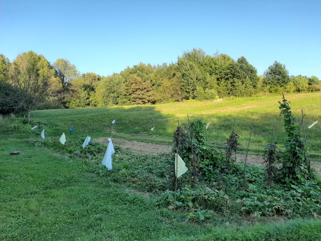 Med pokošene travnike je sem in tja umeščen kos zorane zemlje, obdan z ograjo in strašili, ki odganjajo divjad in ptice. Na stranskih gredicah je posejanih nekaj okrasnih rož ali sončnic. Fižol, krompir, zelje, solata, špinača, koleraba, repa … Družinska njiva. Moški v družini poskrbijo za pripravo zemlje, oranje in gnojenje. Pobiranje krompirja je čas, ko se na njivi zvrstijo pomagači, tudi otroci. Sicer pa je delo na njivi večinoma v domeni žensk, pogosto starejših. Viški pridelkov se izmenjujejo, podarjajo in shranjujejo za ozimnico, skozi dobrine se v sistemu recipročnosti, medsebojne pomoči in hierarhije krepijo in lomijo odnosi. Delo na njivi terja tudi napor; ali se bo vložek poplačal in obrodil sadove, pa je odvisno tudi od vremenskih razmer, na katere ljudje nimamo vpliva. Letos je bila letina krompirja odlična. Vsaj tu smo imeli zares krompir!