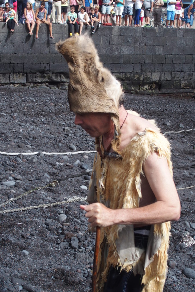 Vodja obreda kopanja koz v pastirski opravi guanchev