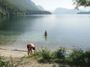 Poletno terensko delo velikanov slovenske etnologije in folkloristike: Valens Vodušek in Milko Matičetov ob snemanju pravljičarja Joza Kravanja Marinčiča.