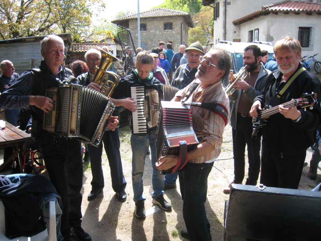 Procesija se s tem zaključi, a sledi izredno zanimiv, živahen »senjam«, druženje s hrano, pijačo in muziko v Bordonih. Prav neverjetno je, kako dobro in s kakšno lahkoto domačini vse pripravijo in postrežejo, vse do pladnjev slaščic, ki jih na koncu prinesejo nasmejana dekleta in žene. Nato pa zaigrajo godci na harmonikah, basu, kitari, violini, ki imajo očitno velik skupen repertoar komadov, saj se ti kar prelivajo drug z drugim; sčasoma se pridruži še več muzikantov, moški in ženske z različnimi instrumenti, vključijo se tudi pevci. Tu ni nobenega ozvočenja, vse je spontano, veselo muziciranje. Čudovit zaključek prelepega dneva.